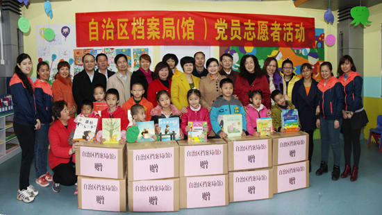 2015年3月5日,是“学雷锋”活动日和元宵佳节,广西壮族自治区档案局(馆)副局(馆)长、机关党委书记覃兰花同志带领局(馆)党员志愿者22人,到广西听力言语康复中心开展党员志愿者和学雷锋活动,为康复中心60多名听障儿童送上价值7000元的书籍和档案管理软件,询问了解听障儿童的康复情况,并对康复中心档案业务进行了指导。期间,党员志愿者们还与听障儿童一起做听障康复游戏、表演节目、包汤圆,与他们一起度过了一个欢乐、温馨的元宵节。