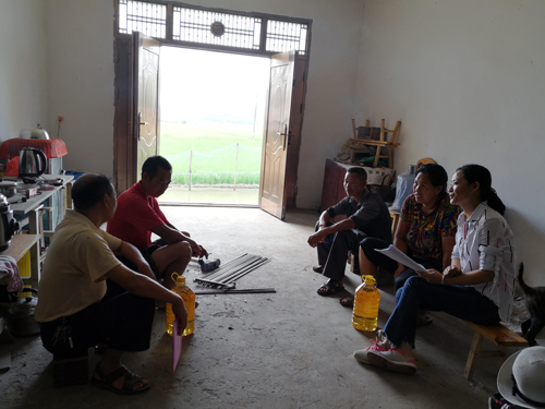 5月29日,全州县档案局组织全体党员干部到龙水镇安陂村委集中开展“雨露计划”扶贫政策宣传,与村干部共商集体经济发展大计。