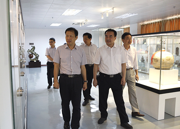 自治区党委组织部常务副部长莫诗浦参观公务礼品档案展(左一)