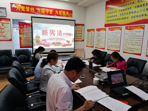 在学习交流中大家认为,此次宪法修改是时代大势所趋、事业发展所需、党心民心所向,是实现中华民族伟大复兴进程中的重大举措。宪法的修改更好的体现了习近平新时代中国特色社会主义思想的优势,更好的体现了党和人民的意志。大家表示,在今后的工作中,要以宪法思维武装头脑,认真学习领会宪法修正案的实质,牢固树立“四个意识”,坚定“四个自信”,坚决维护党中央权威和集中统一领导,坚决维护习近平同志的核心地位;牢记档案工作者的使命和责任,全力做好为党管档、为国守史、为民服务。