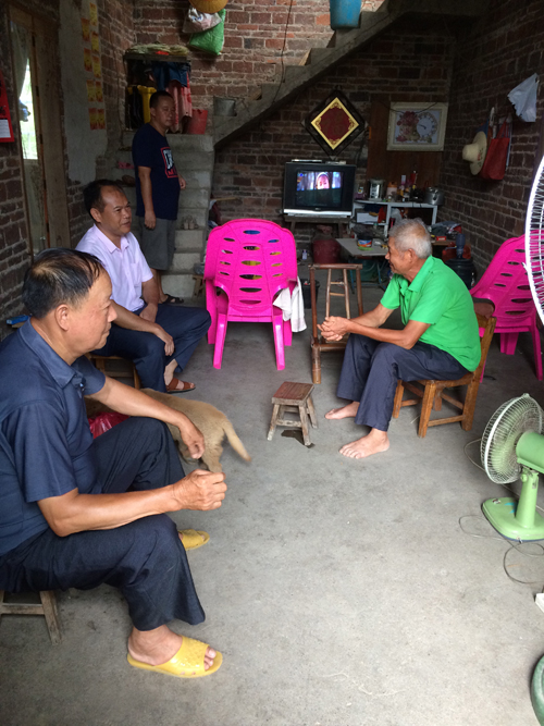 2018年7月6日,平乐县档案局局长廖英恩(左二)走访驻村联系户张木传(右一)