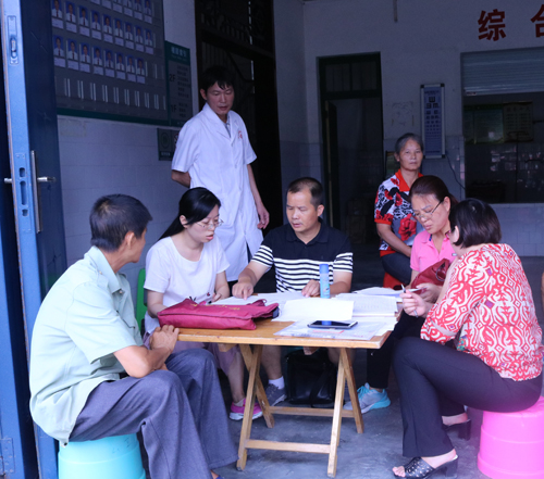 图为金城江区档案局干部在协助贫困户办理残级评定手续