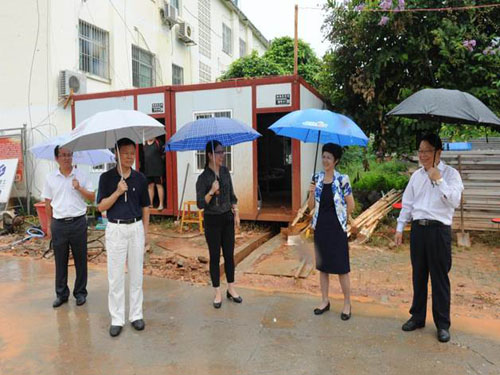 图为覃兰花(右二)、赖佩媛(右三)在档案馆项目工地调研