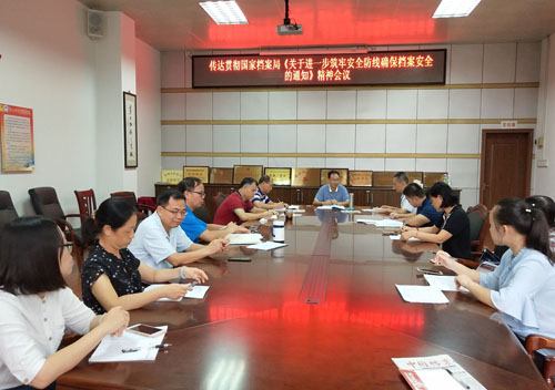 根据广西壮族自治区档案局转发《国家档案局关于进一步筑牢安全防线确保档案安全的通知》要求,会议认真学习了习近平总书记关于安全生产的重要论述重要指示,重温了国家档案局《关于进一步加强档案安全工作的意见》。会议要求进一步增强忧患意识、责任意识,充分认识做好档案安全工作的重要性和迫切性,切实把档案安全作为重中之重抓紧抓好,时刻绷紧档案安全这根弦,任何时候、任何环节都不能麻痹大意。切实履行好管理职责,真正做到认识到位、工作到位、措施到位。