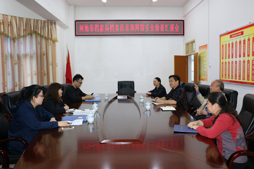为深入了解全区档案系统贯彻落实国家档案局《关于进一步加强档案安全工作的意见》及2017年全国档案安全工作会议精神情况,进一步加强全区档案部门对档案安全工作重要性的认识,及时发现和排除档案信息和网络安全隐患,堵塞安全漏洞,深入推进全区档案安全工作,确保档案信息安全。根据自治区档案局的工作部署,2018年10月16日,自治区档案局检查组在何拥军处长的带领下深入河池市档案局开展档案信息和网络安全检查工作。检查组查阅了迎检台账资料,检查了档案信息化工作场所、电子文件(档案)备份中心、机房等地方。检查组对该局认真抓好档案信息和网络安全工作给予充分肯定,同时,也指出了亟待解决的问题:一是熟悉档案信息化专业人才缺乏,档案信息化工作开展有待加强;二是网络安全防护设备投入经费不足,设备陈旧,抗风险能力低;三是网站管理人员为兼职人员,平时在抓好岗位业务的同时,既要维护网络硬件设施又要负责网站信息,对网站管理工作不够到位。