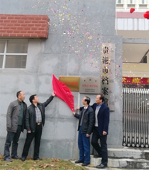 贵港市档案局(馆)长龚洁青、贵港日报副刊部主任徐强等为贵港日报小记者社会实践基地揭牌